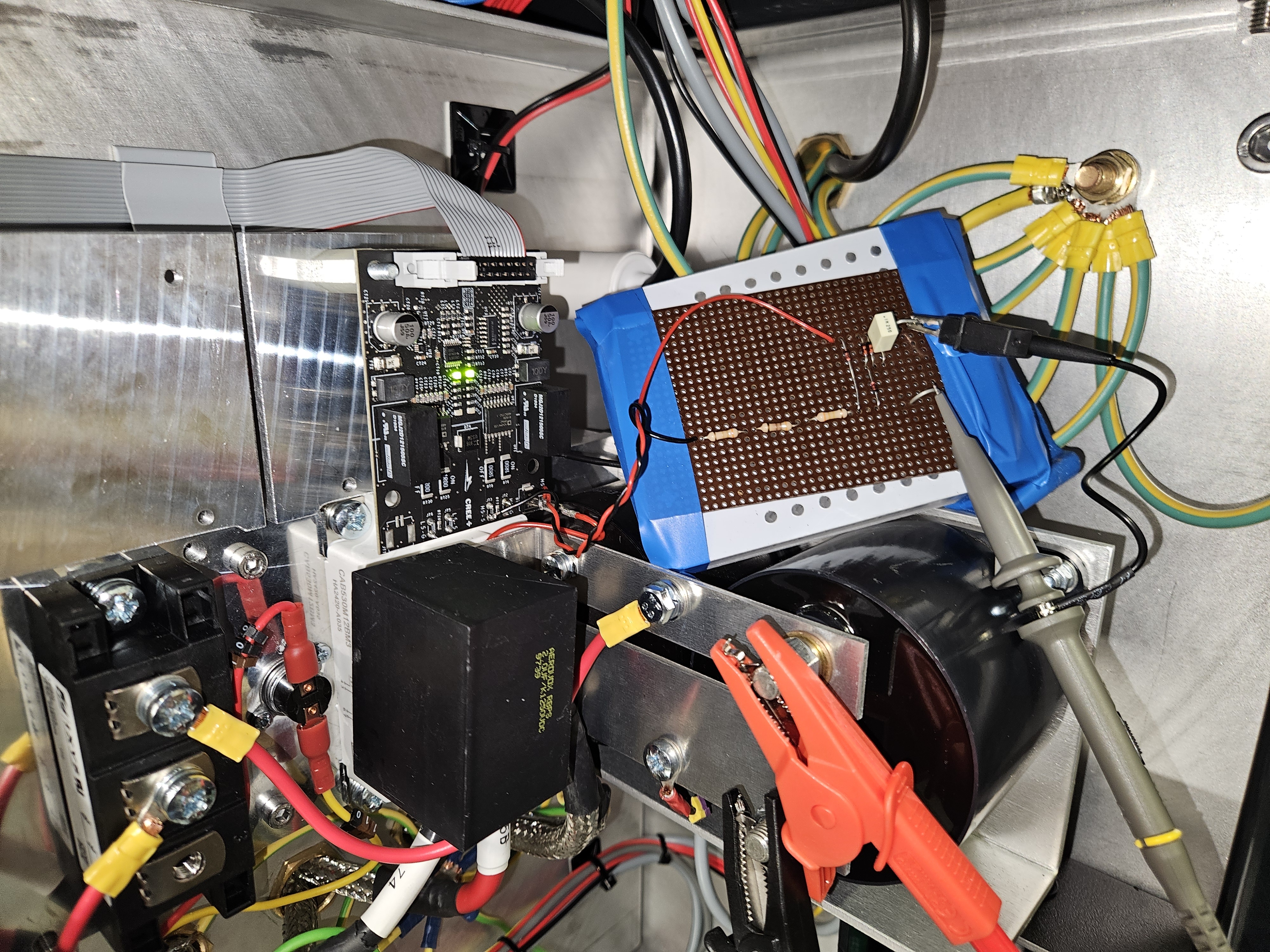 Photo of the layout below, the clamp for measuring the Vds is temporarily attached.