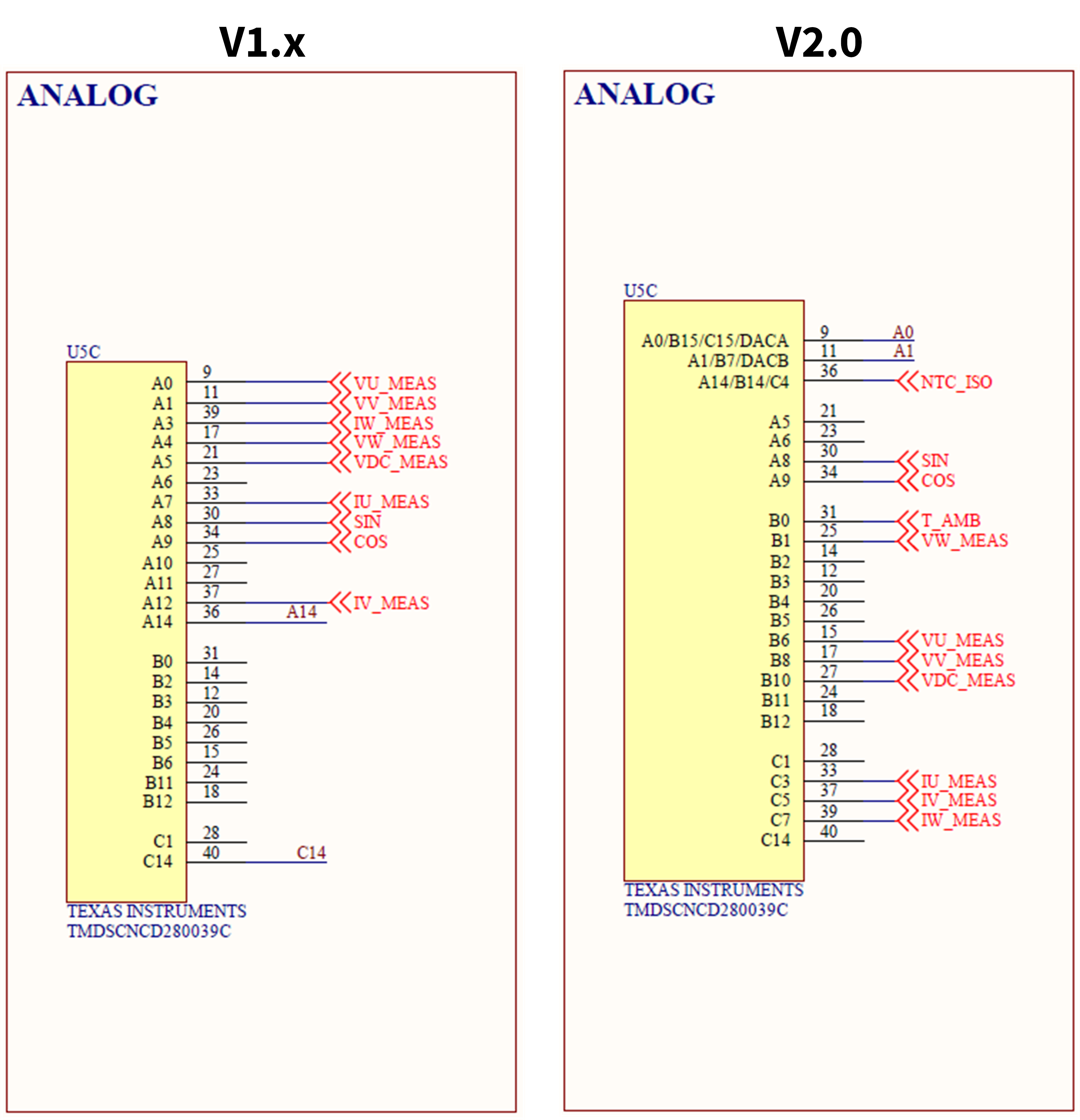 I attached the updated firmware which fixes the pin mapping (this is the firmware that ships on the units). The new firmware (V2.0.0) transitions to using the SysConfig tool in CCS which is the current "best practice" for C2000 programming recommended by Texas Instruments. I also attached the updated schematic and provided a picture of the ADC differences below. We have an active request in for the website to get updated, so I expect the firmware and design files download links to be updated soon.
